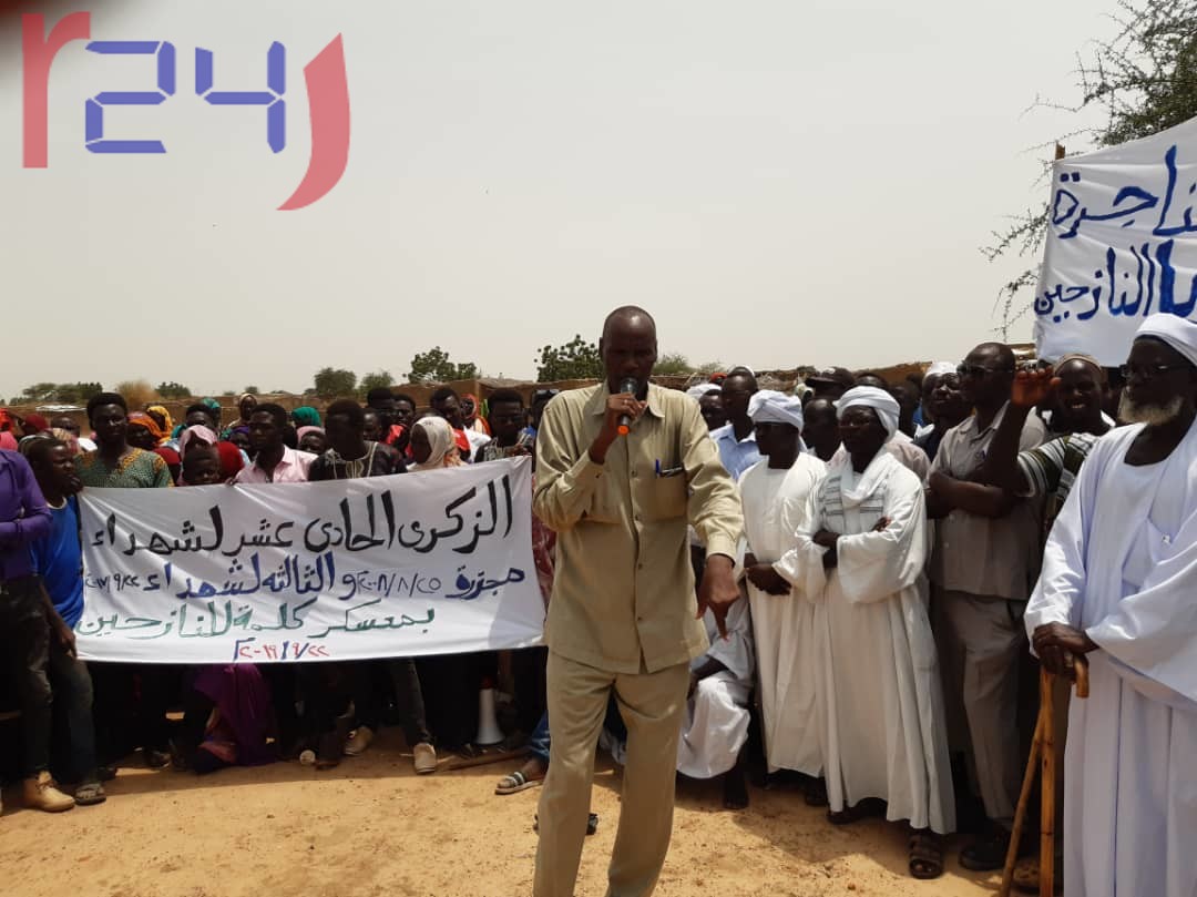 وردد محيو الذكرى في احتفال اقيم حول مقبرة جماعية تضم ضحايا المجزرتين شعارات تندد بالظلم الذي تعرضوا له إبان حكم المخلوع واستمرار اعمال العنف والقتل التي تطال النازحين في معسكرات شنقل طوباي وقريضة ومرشينج.