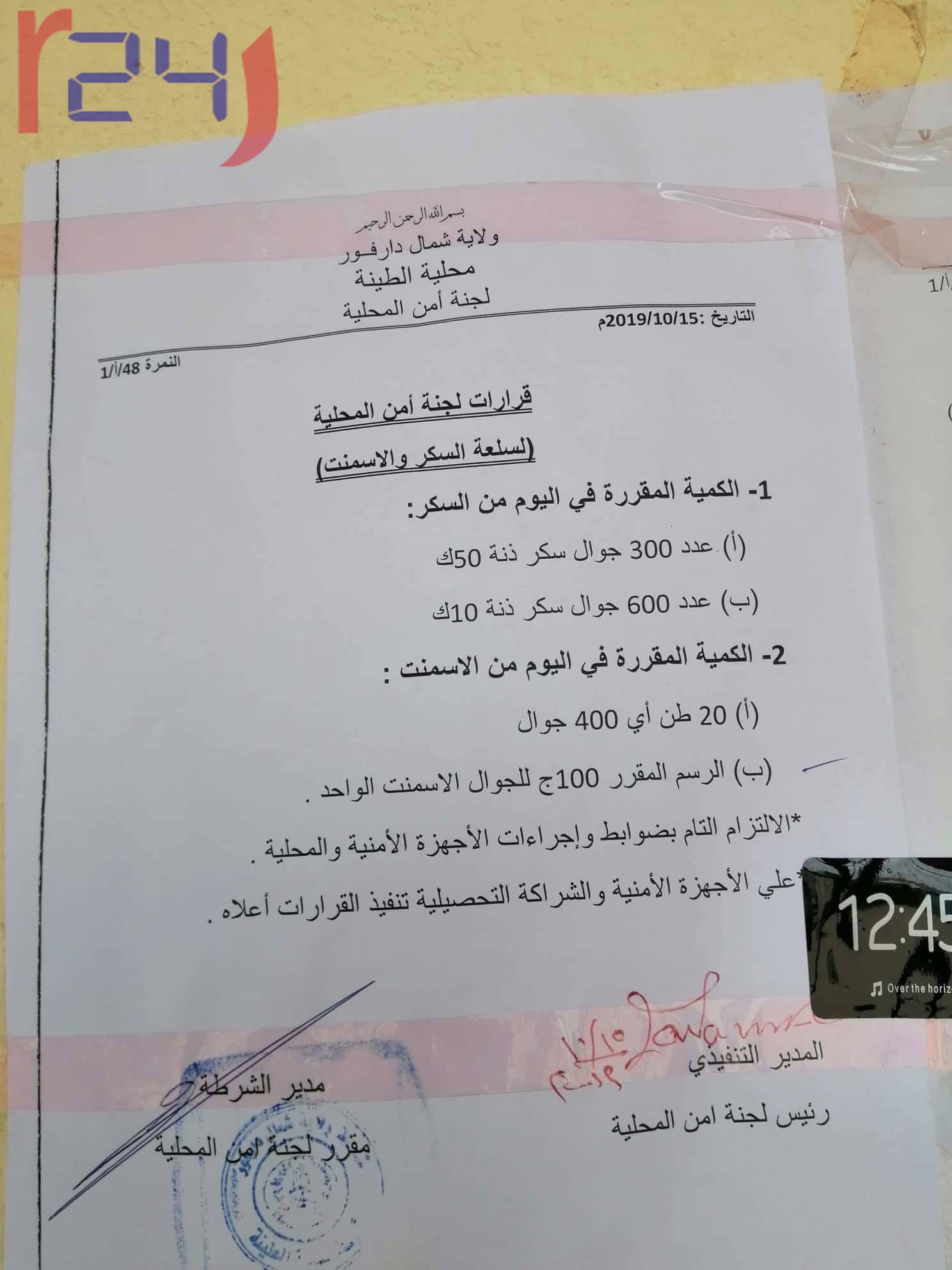 وبحسب خطاب صادر عن لجنة أمن محلية الطينة والمهور بتوقيع المدير التنفيذي للمحلية أطلعت عليه “دارفور 24” حددت المحلية عدد 300 جوال سكر زنة 50 كيلو، و600 جوال سكر زنة 10 كيلو، للدخول إلى تشاد في اليوم الواحد.