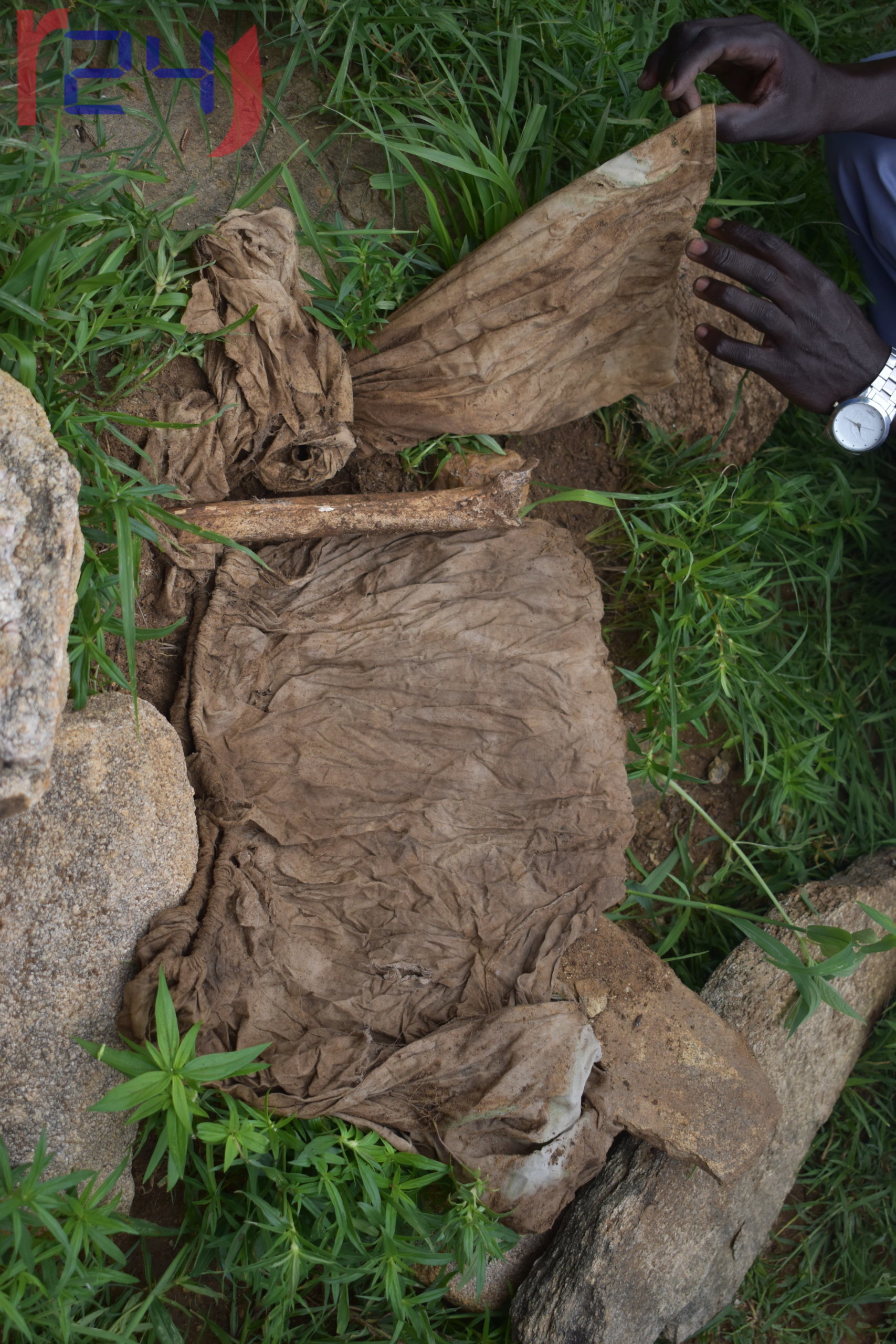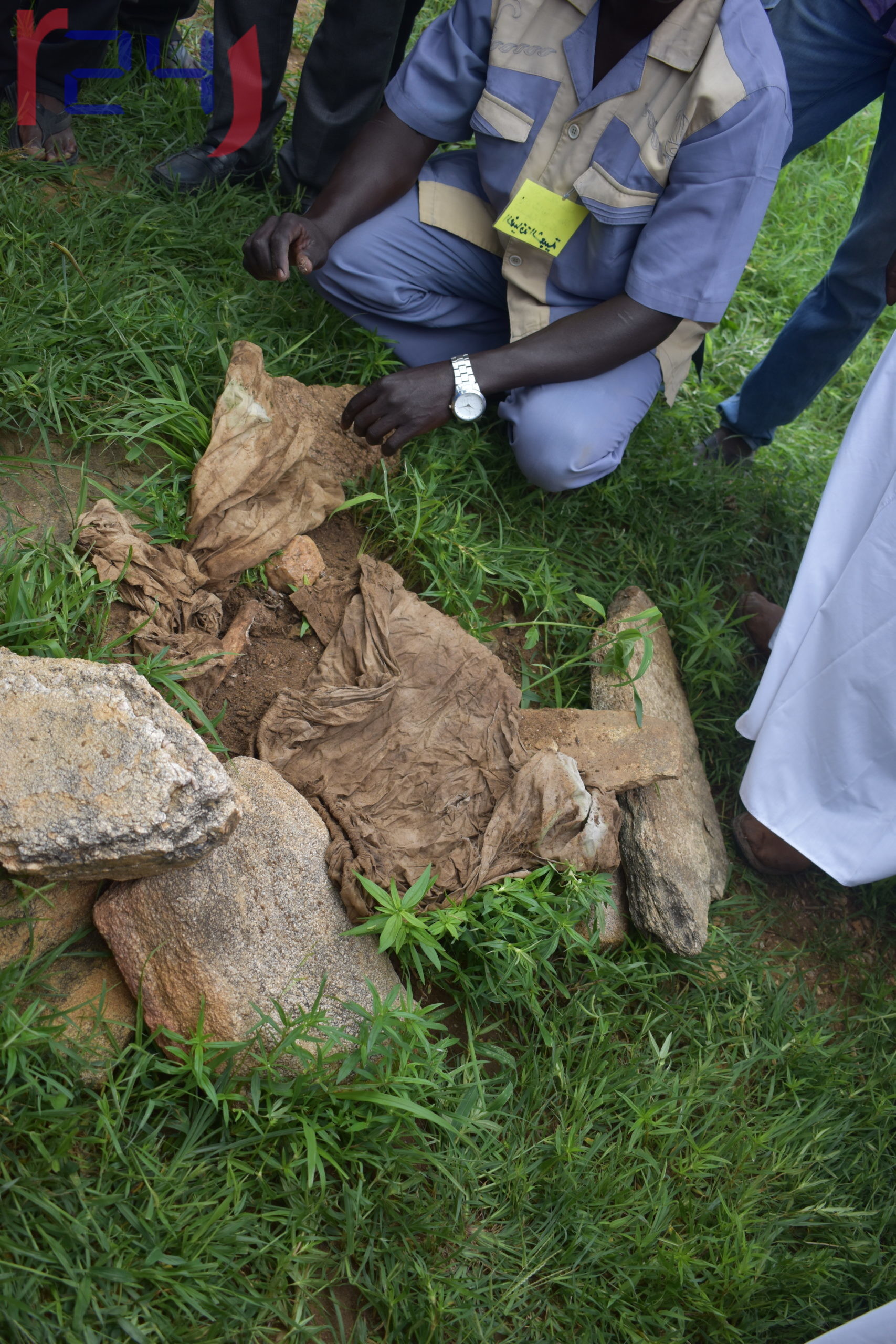 والي وسط دارفور وبعض اهل الضحايا يقفون في المقبرة الجماعية