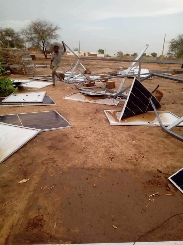 انهيار أعمدة وحوامل مشروع الطاقة الشمسية لمحطات مياه الشرب قبل اكتماله بصورة مفاجأة بسبب عاصفة ترابية ضربت مدينة الضعين الاسبوع المنصرم، وأد تفاؤل مواطني الولاية بالمشروع، الذي يعتبر أول مشروع ضخم تنفذه حكومة الفترة الانتقالية بتكلفة بلغت 584 مليون جنيه.