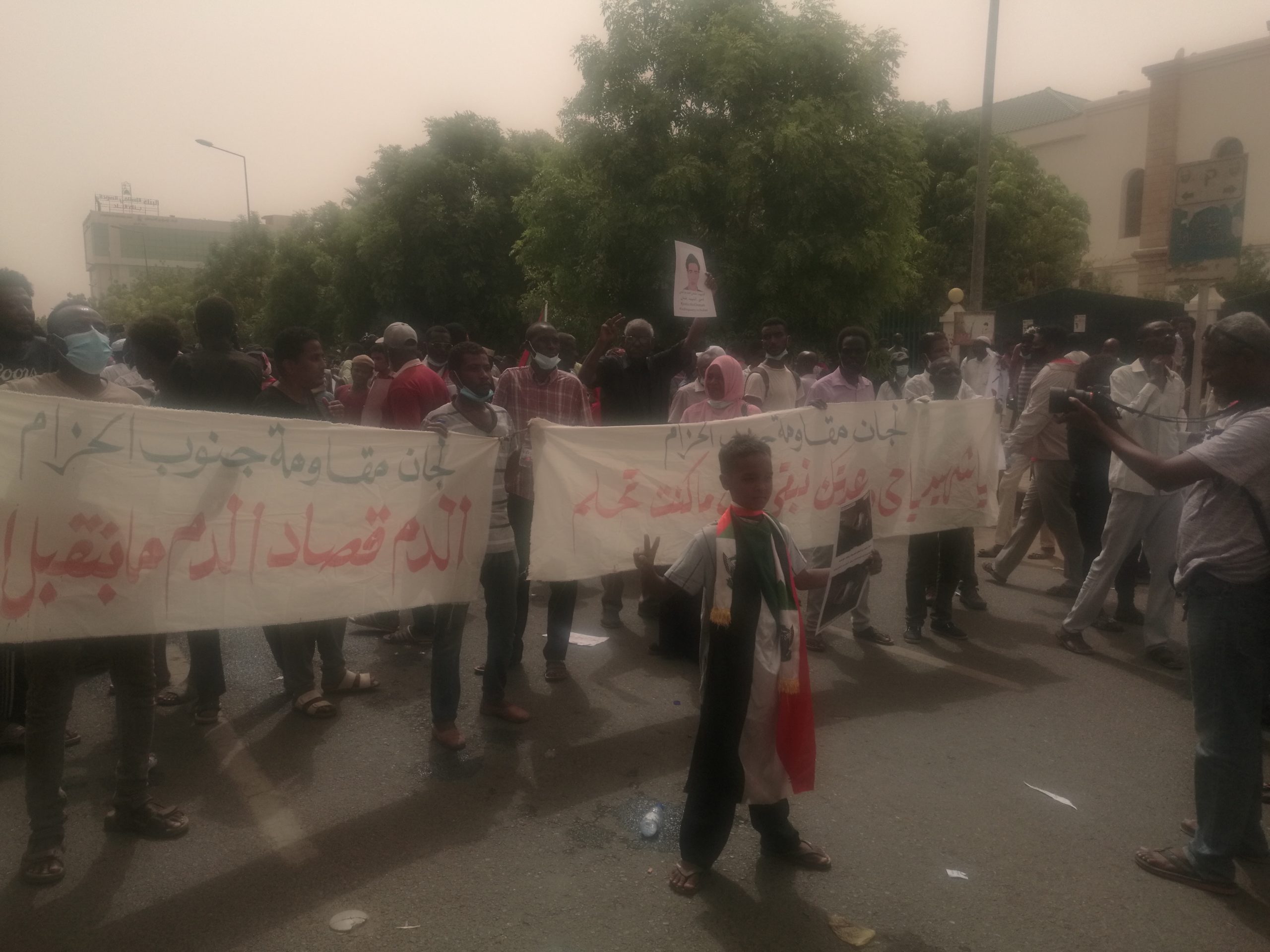 وتجمع مئات الشباب وسط الخرطوم في دوار القنديل رافعين لافتات كتب عليها شعارات (القصاص لشهداء و الدم قصاد الدم و المشنقة بس)، قبل أن يتحركوا في موكب مهيب إلى مقر رئاسة مجلس الوزراء بشارع الجامعة، التظاهرة وغالب المشاركين في التظاهرة من الشباب و الشابات تحت سن الثلاثين، من لجان مقاومة الخرطوم،ورصدت دارفور24 انتشار لقوات الشرطة في شارع القصر و وسط السوق العربي بمجمع الذهب.