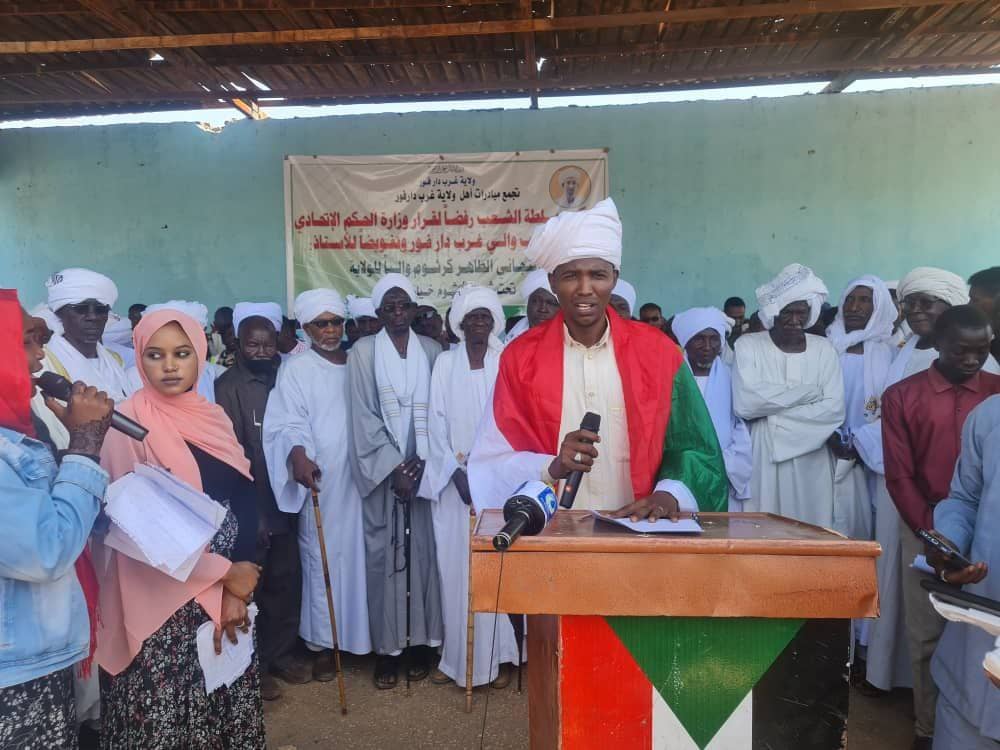 وتلى ممثل لما أطلق عليه ” المبادرة الشعبية لاهل ولاية غرب دارفور ” مذكرة تندد بقرار وزير الحكم الاتحادي محمد كرتكيلا الصادر في الثالث والعشرين من نوفمبر الماضي باعفاء تجاني كرشوم من منصبه وتكليف الهادي ناصر منير بتسيير شؤون ولاية غرب دارفور.