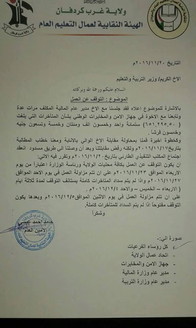 أعلنت الأثنين نقابة التعليم بولاية غرب كردفان، اضراب عن العمل، الأربعاء المقبل احتجاجا على عدم صرف مستحقات مالية. وقالت النقابة في بيان صحفي الأثنين إن النقابة قررت الدخول في إضراب عن العمل يوم الأربعاء المقبل و لمدة يومين، بعد فشل وزارة المالية بالولاية تسديد مستحقات مالية للمعلمين. وأضاف البيان أنأكمل القراءة