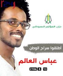 أعلن حزب المؤتمر السوداني المعارض، السبت عن اعتقال أحد كوادره من قبل عناصر جهاز الامن بالخرطوم. و قال الحزب في تصريح صحفي، إن قوة أمنية قامت مساء السبت بإعتقال عضو الحزب عباس العالم من سوق المركزي، عقب مشاركته في مخاطبة سياسية للحزب، وقتادته ىإلى جهة مجهولة. وأقام الحزب عصر اليومأكمل القراءة